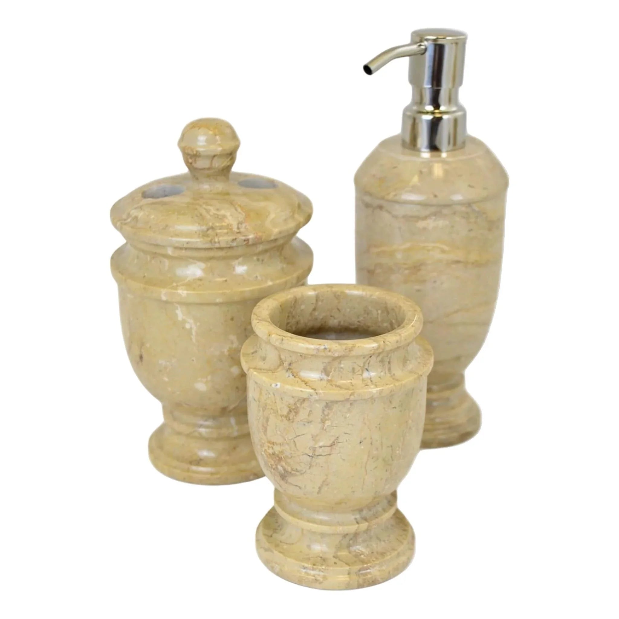 3 Piece Bathroom Accessory Set- Elegant Bathroom set in Sahara Beige Marble