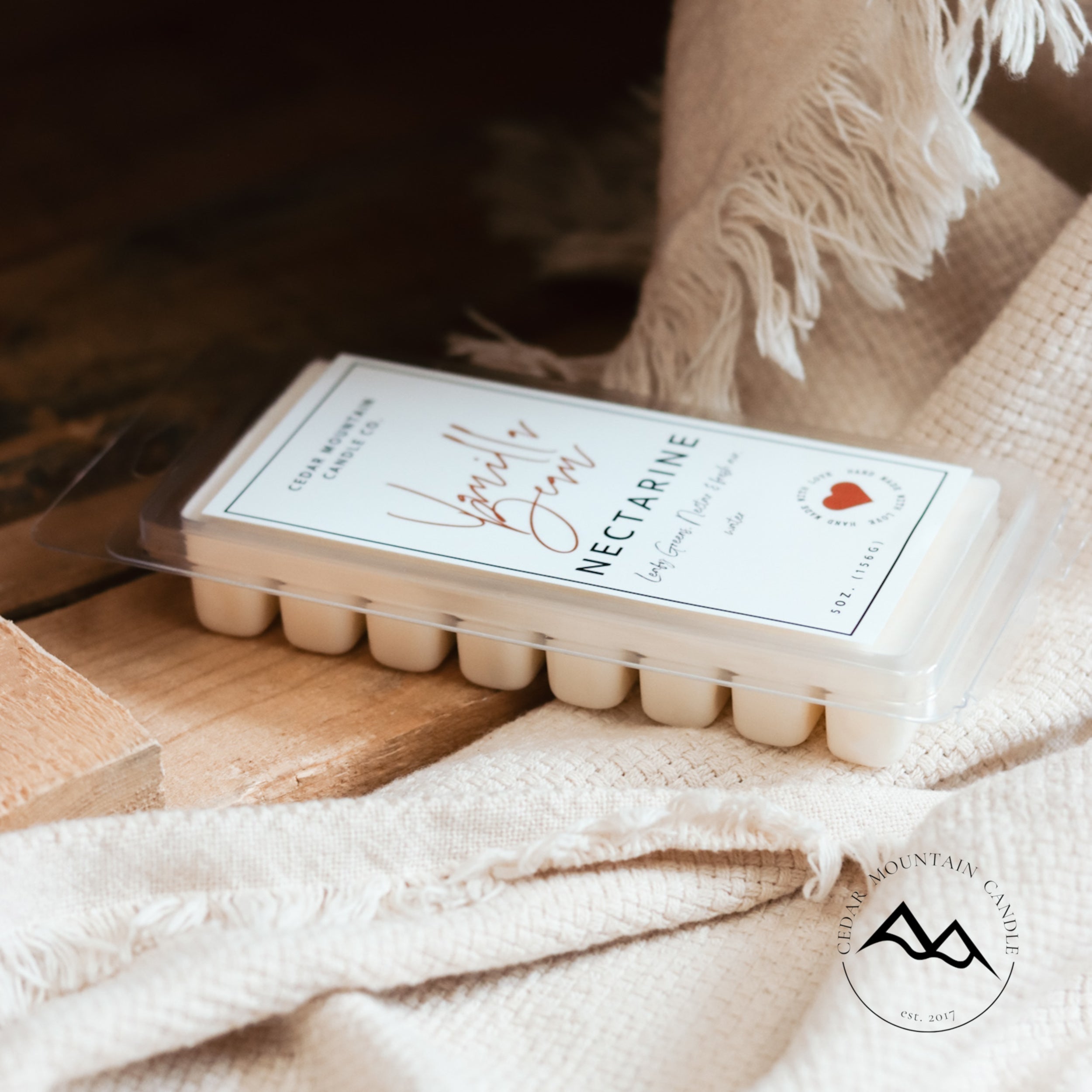 Our 5.5 oz wax melts are filled with dye-free soy wax. Available to order wholesale. Choose your scent.