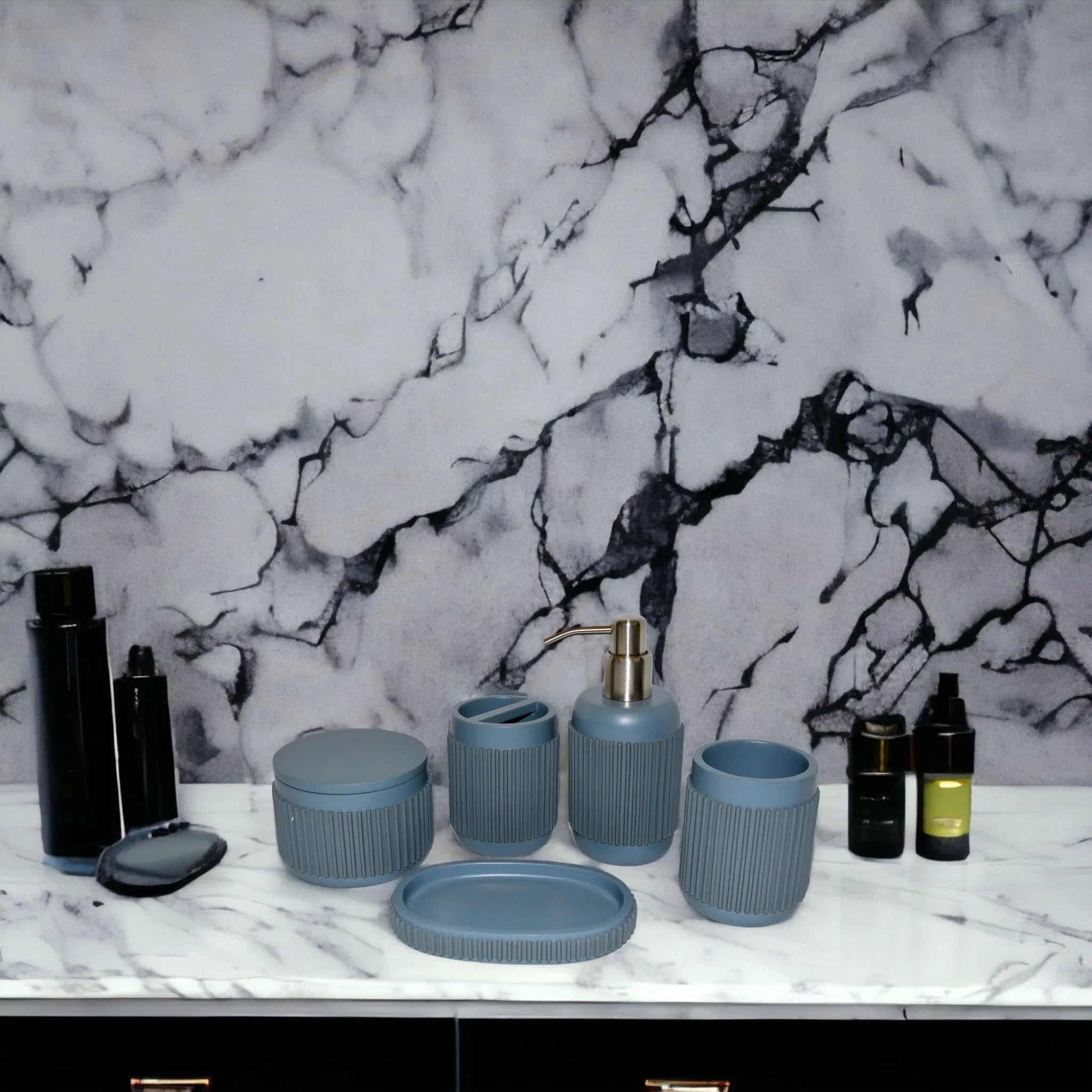 An exceptional selection of superior materials, combined with expert craftsmanship, produces the opulent 5-Piece Bathroom Accessories Set of Gray Ribbed Design. Bestow your space with the refinement and exquisite artistry of this revered set. The intense combination of superior materials and masterful craftsmanship makes this 5-Piece Bathroom Accessories Set of Gray Ribbed Design a standout choice. Allow your space to exude sophistication, refinement, and awe-inspiring artistry.