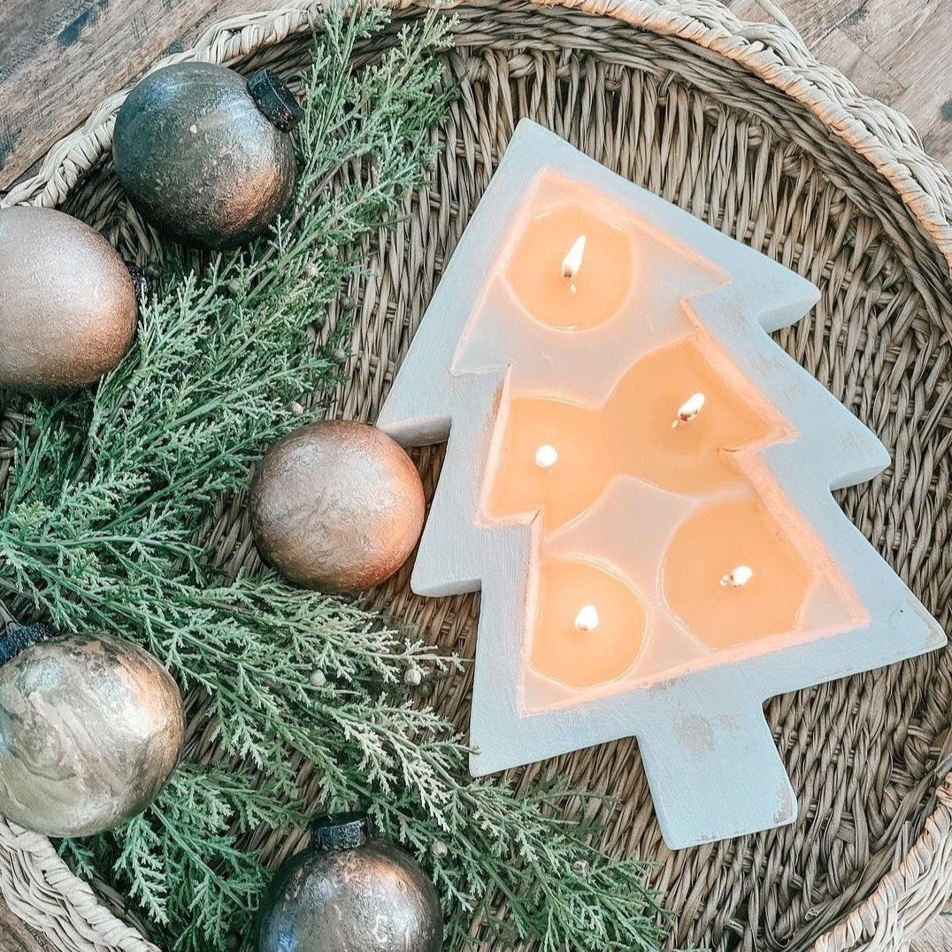 5 Wick White Wood Tree Bowl Candle - Christmas Hearth