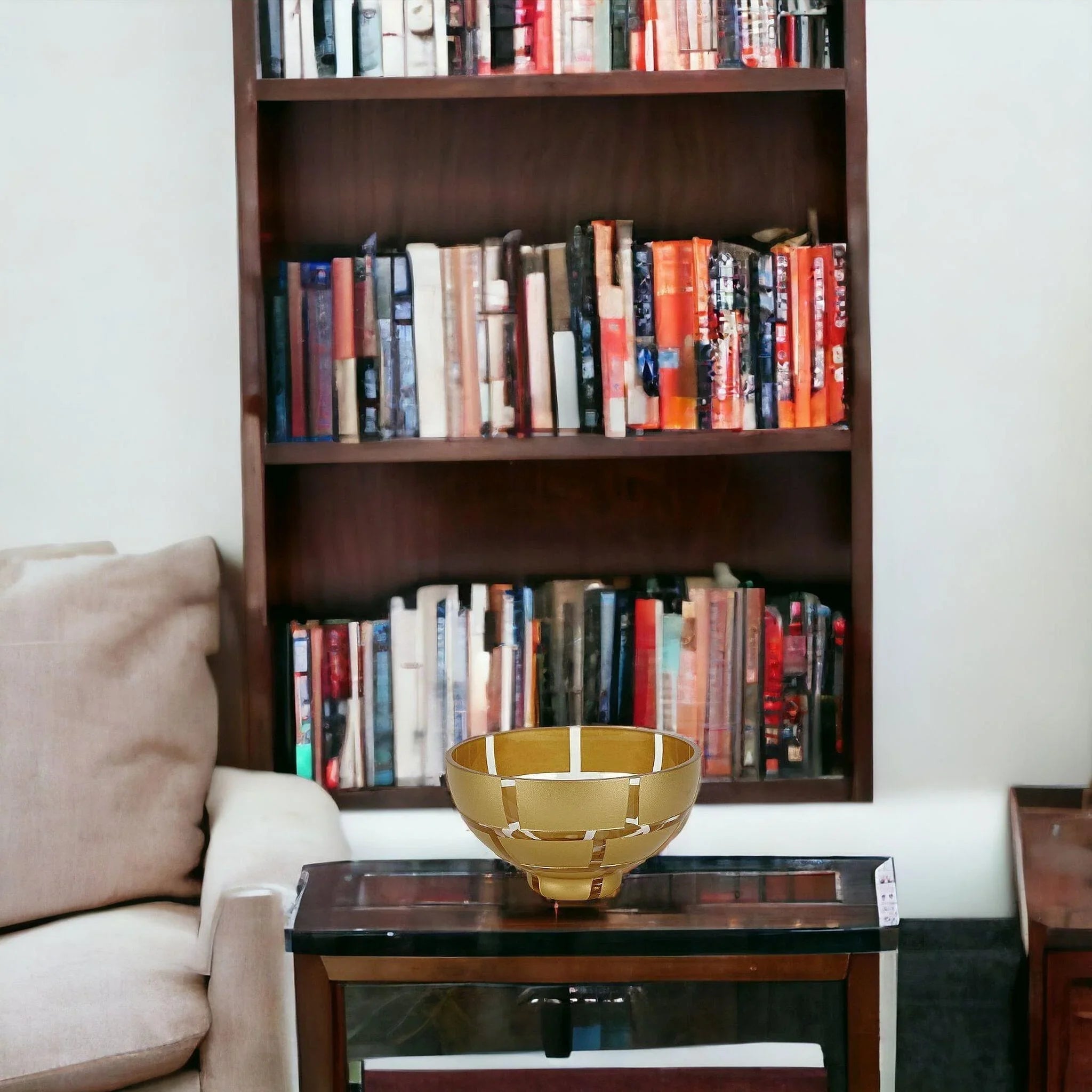A work of art, this elegant 7 inch Crystal Glass Bowl adorned with genuine Antique Gold Leaf is a timeless piece that is sure to make a lasting impression. Crafted with intricate rectangular brick patterns, all lovingly filled by hand, this stunningly beautiful bowl is the perfect accessory to showcase any living space, or as a stylish and thoughtful gift.