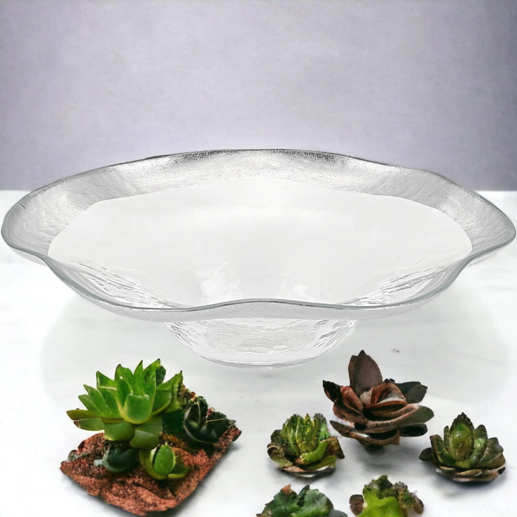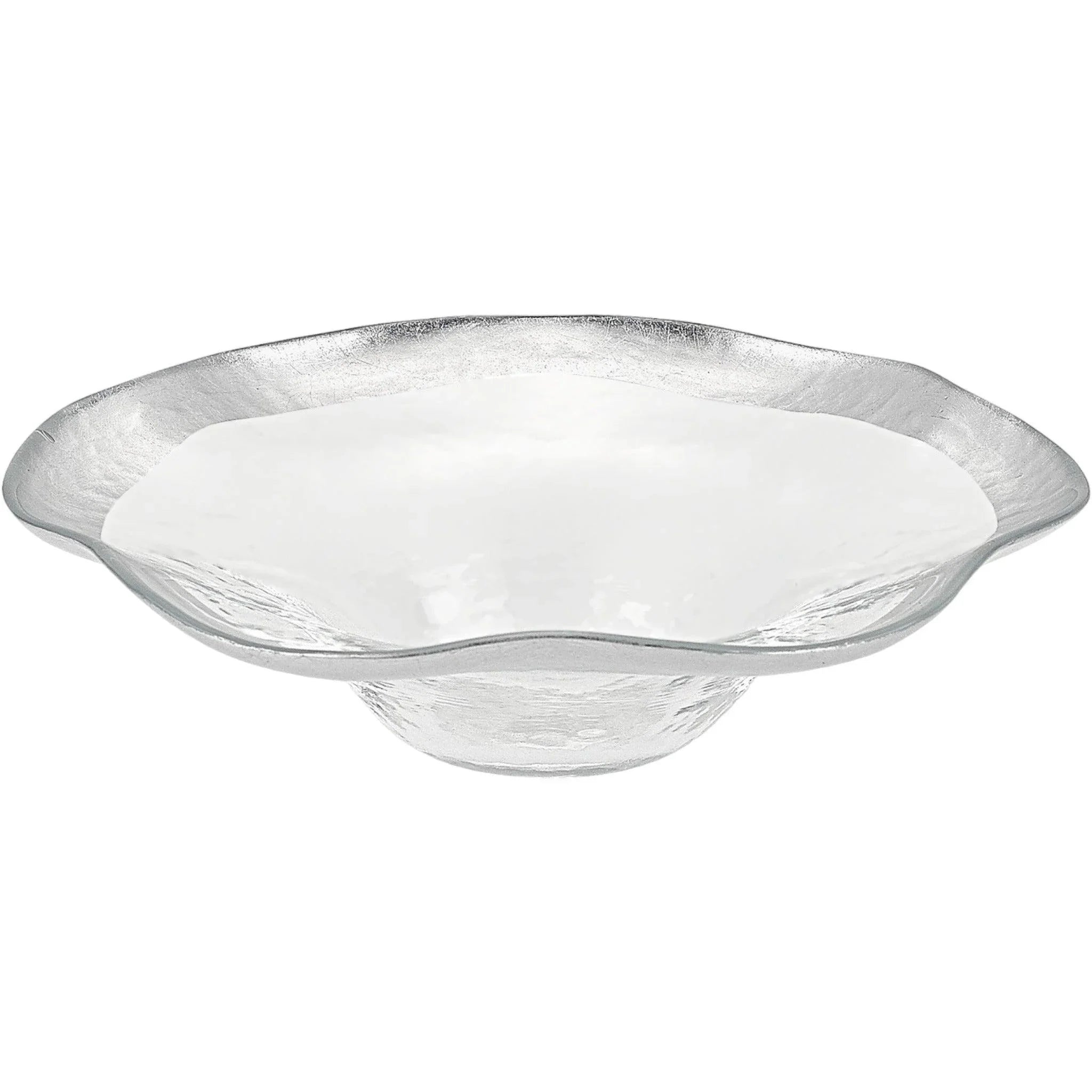 Crystal Glass Wave Bowl with Silver Leaf Pattern