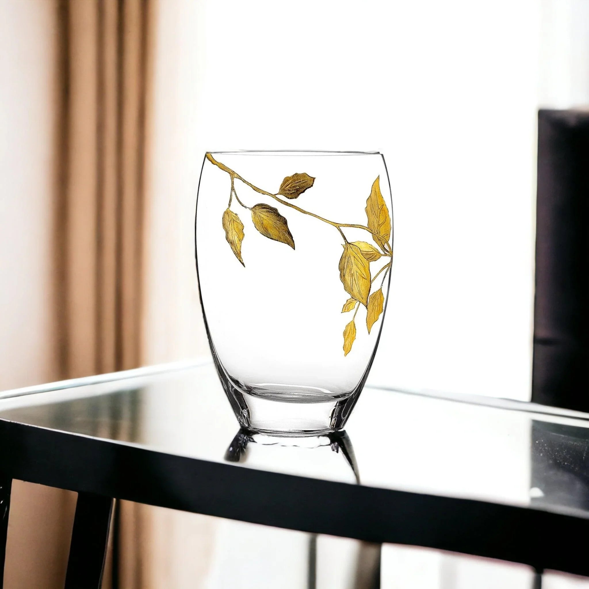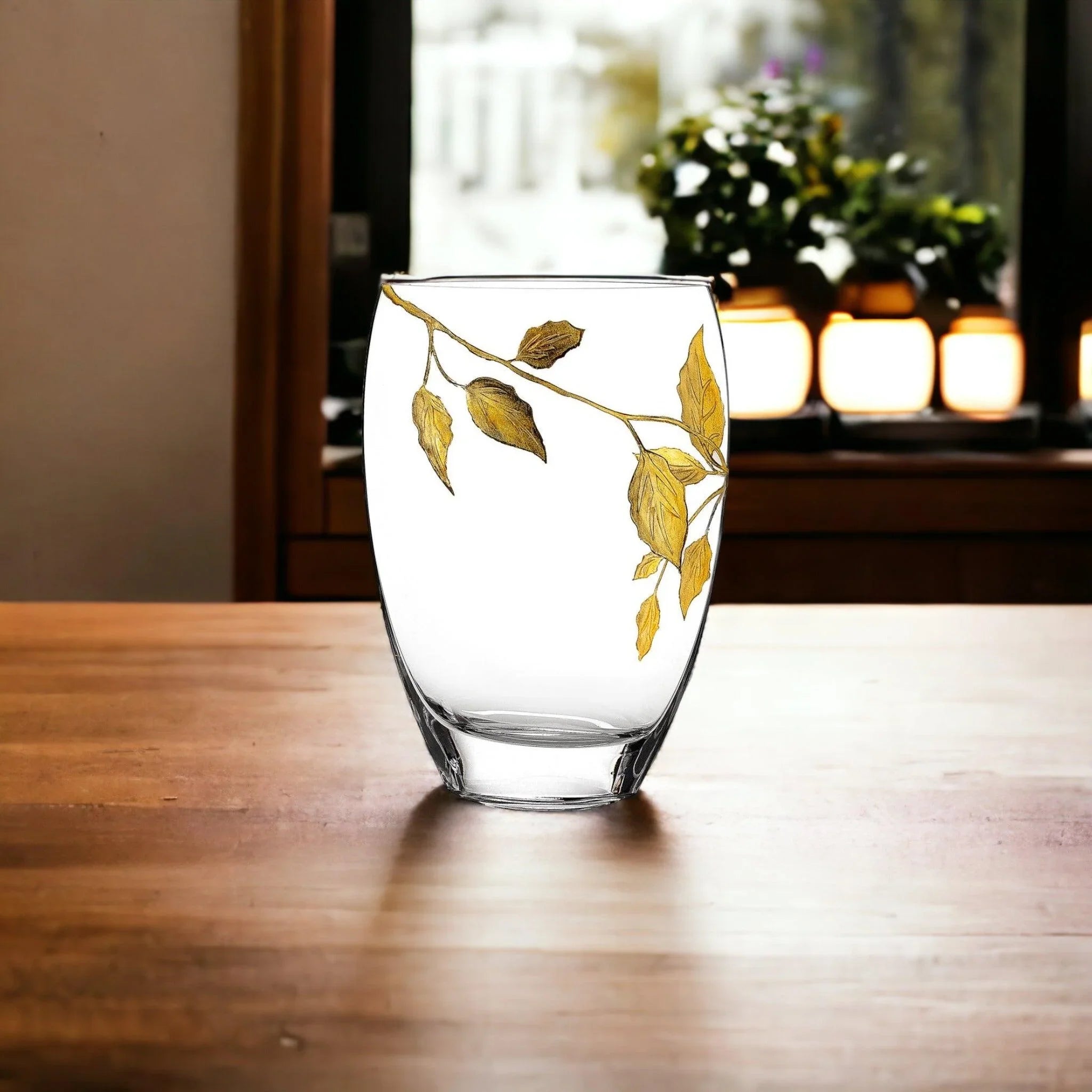 Decorative Vase | 12 inch Crystal Vase with Etched Gold Leaves Design