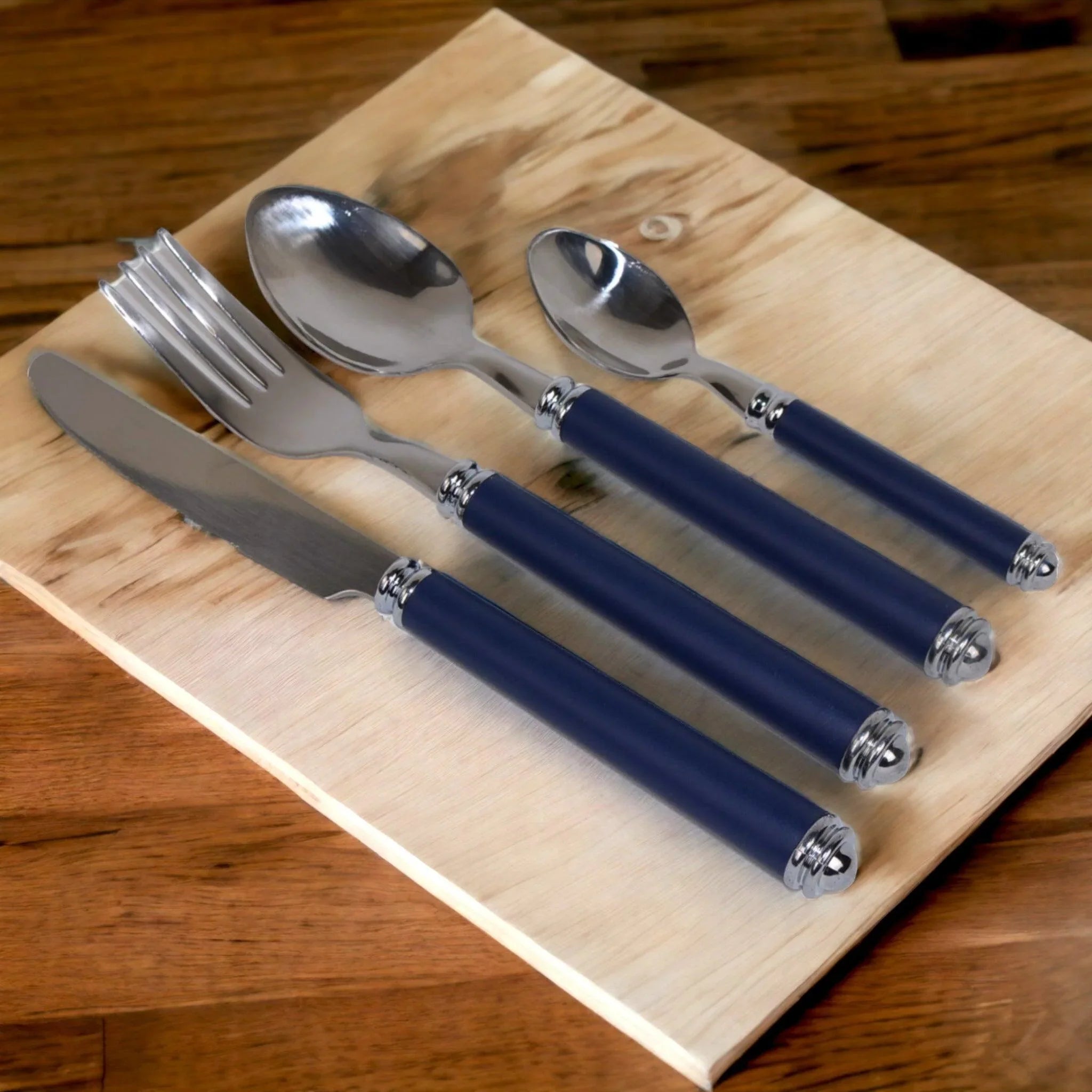 This 24-piece flatware set is the perfect accessory for any laid-back get-together. With its stylish blue handles and 18/10 Stainless Steel construction, it's a casual take on elegance that will make any gathering all the more enjoyable! Plus, it comes with a storage caddy, so you won't have to waste time looking for pieces before your next shindig. Now that's smart!