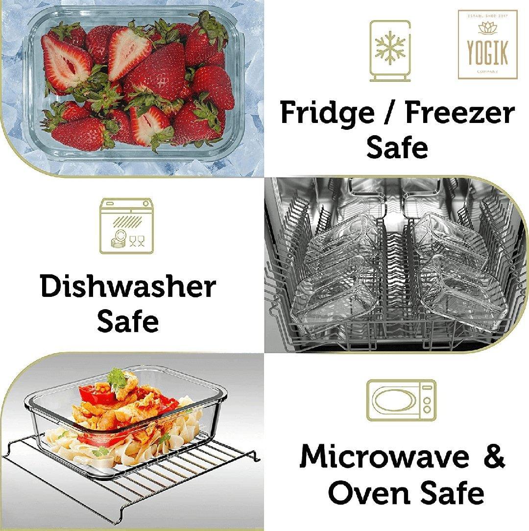 The glass bottoms are dishwasher, oven, microwave and freezer safe.