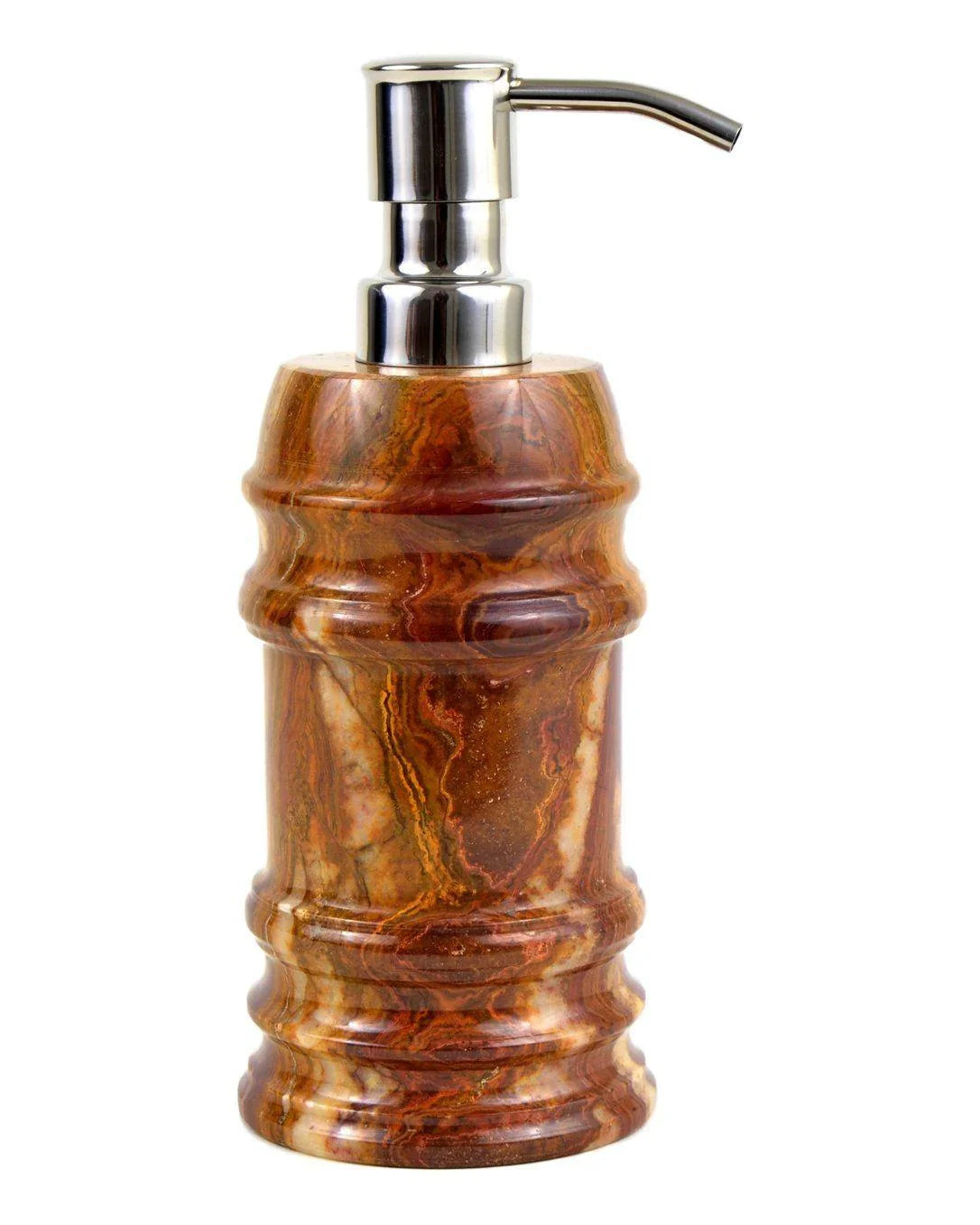 Crafted from Multi Brown Onyx, this liquid soap and lotion dispenser is part of Nature Home Decor's Bengal Collection, fashioned with careful attention to detail. It features a removable bottle for simple refilling and cleaning, and its stainless steel pump is resilient to staining.Size: 3x7.5"