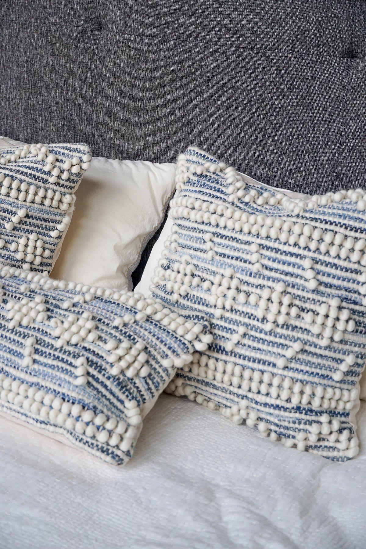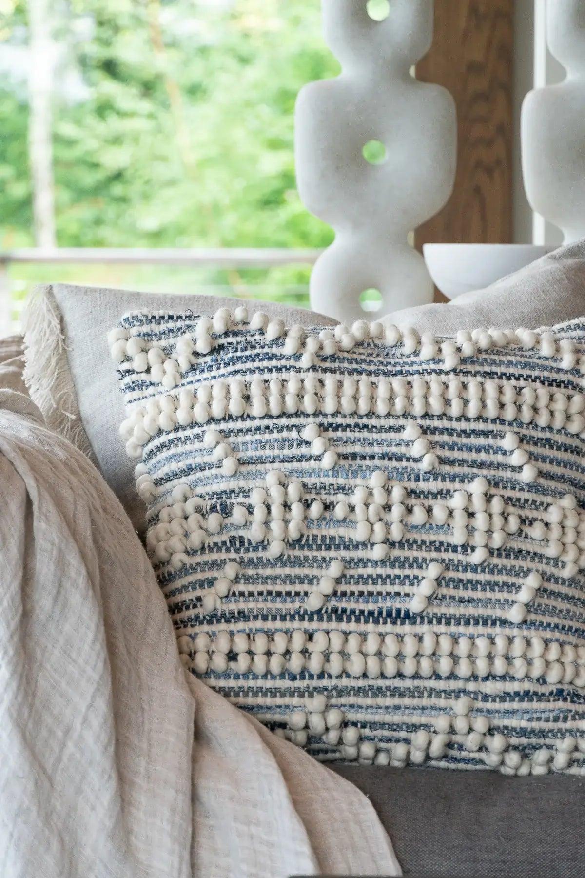 Eco-friendly denim pillow cover, skillfully handwoven for a stylish and sustainable addition to your home.