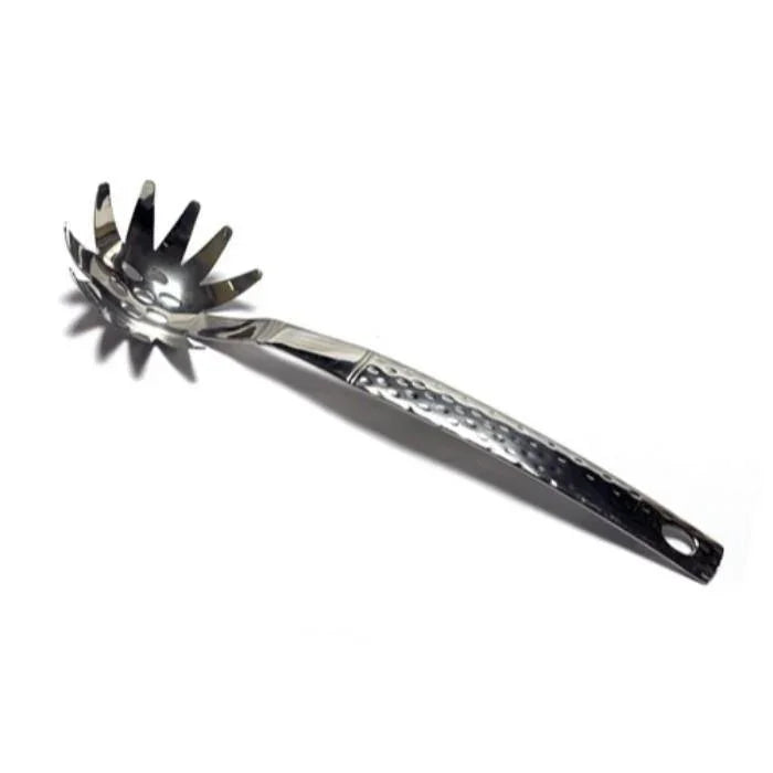 Boasting a flawless 9 inch silhouette of luxurious Stainless Steel, this Spaghetti Spoon features a hammered handle design that exudes professional elegance. Its exquisite style is sure to draw admiration and compliments. With a stunning polished design, the Spaghetti Spoon | Pasta Serving Spoon adds a touch of sophistication to your next gathering. Enjoy the beauty of its hammered finish handle and experience the perfect blend of elegance and utility!